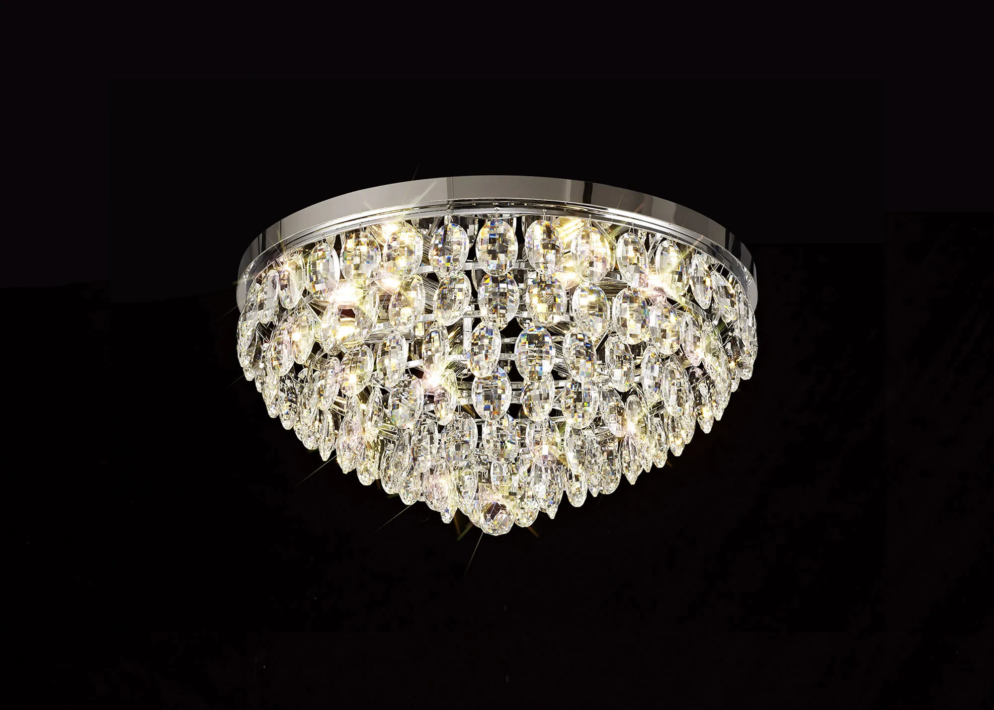 Senorita is a flush crystal ceiling 6 light in polished chrome which has a cascade of wonderful crystal.