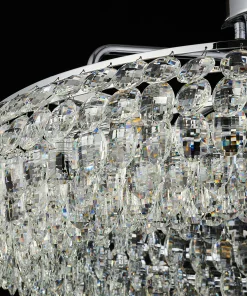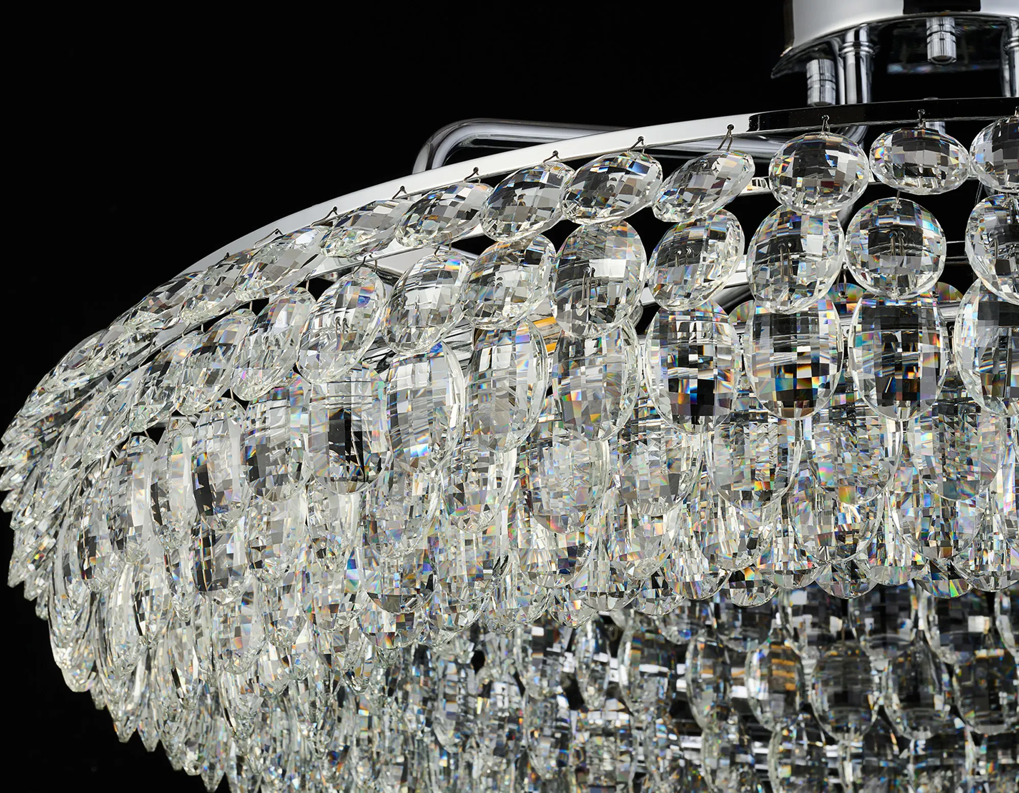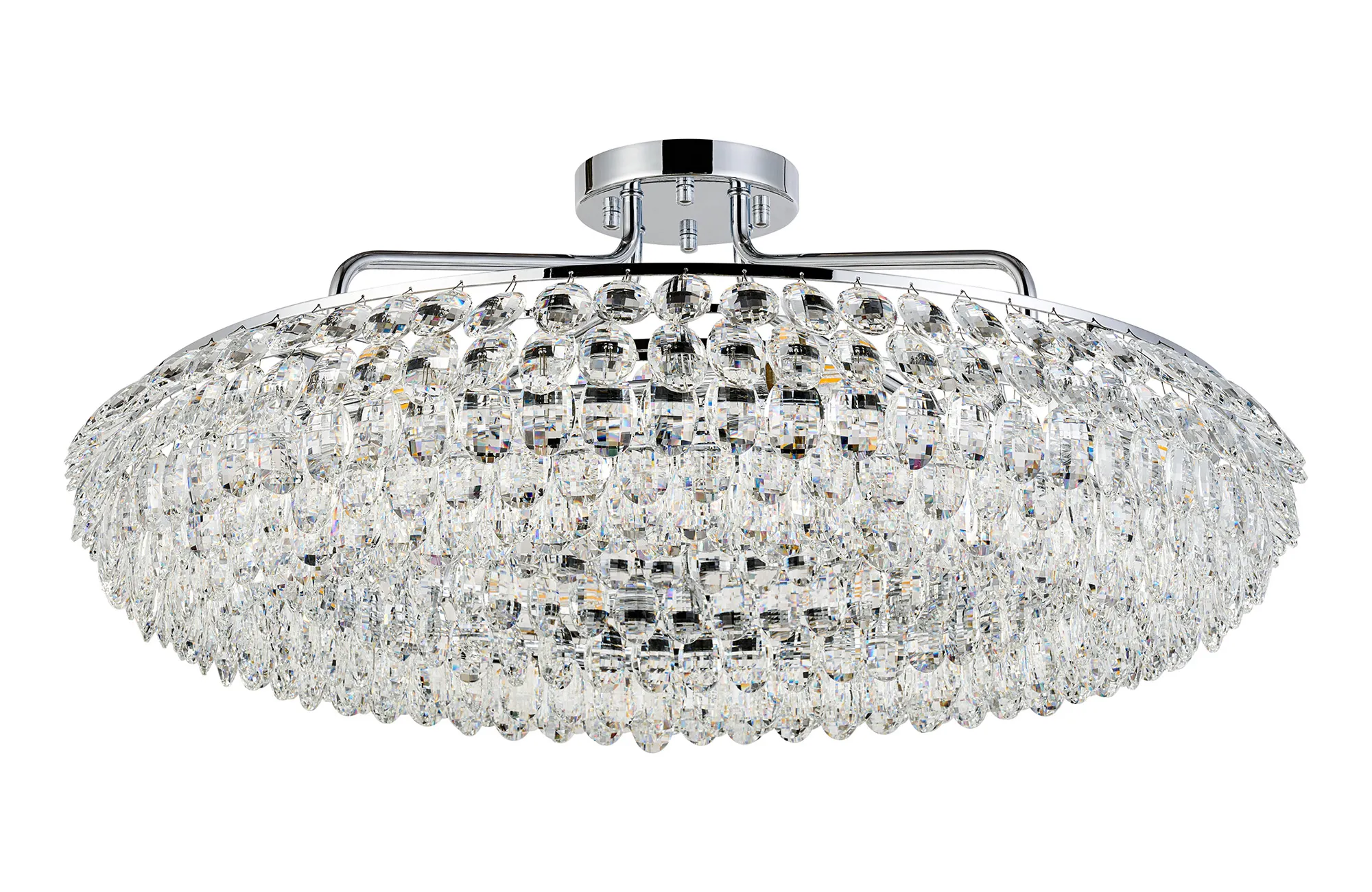 Senorita is a large semi flush crystal ceiling 8 light in french gold or polished chrome which has a cascade of wonderful crystal.