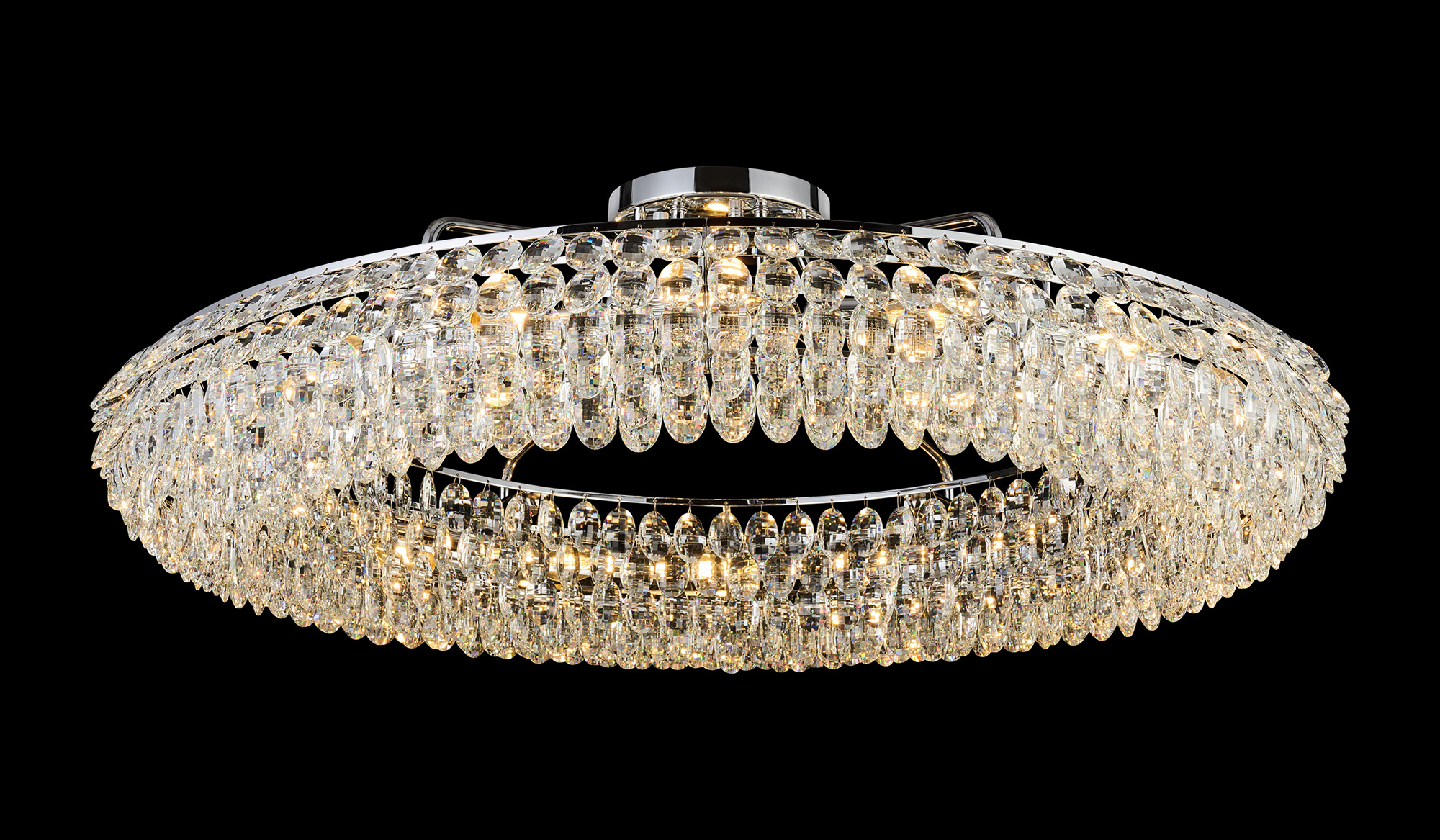 Senorita is a very large semi-flush crystal ceiling 3 light in french gold or polished chrome which has a cascade of wonderful crystal.