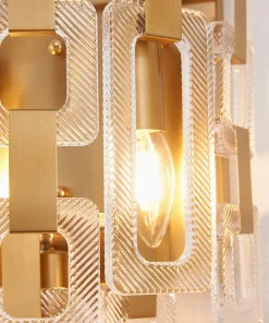 TThe Roman range is a striking fusion of artistry and light in either satin gold or satin nickel Crafted from a composite of square and rectangular clear glass pieces, each pendant creates a mesmerising visual reminiscent of elegant chain mail. The staggered arrangement of glass forms captures and reflects light beautifully, delivering a dazzling play of brilliance and shadow.