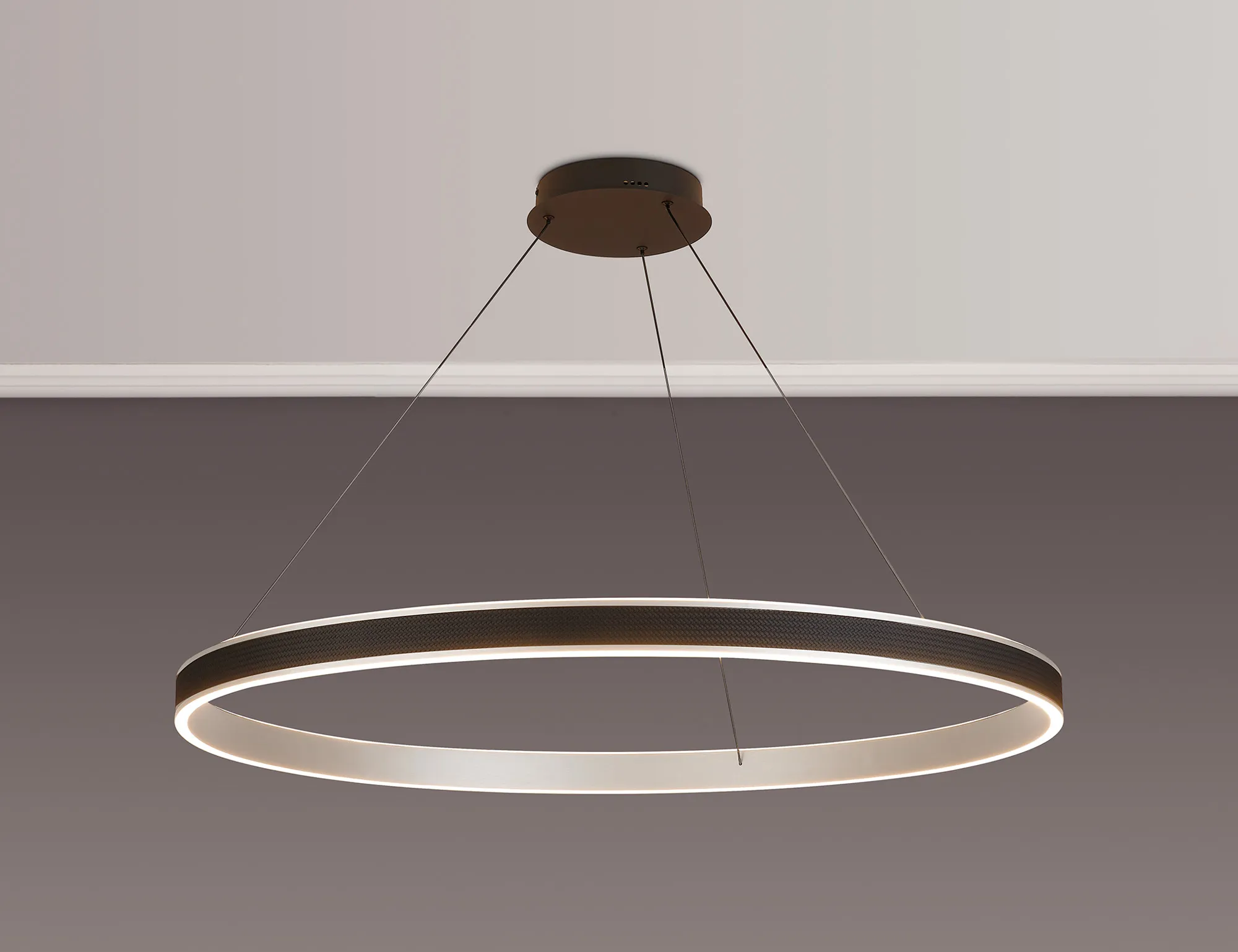 The Casson pendant light is a strikingly modern lighting solution that masterfully balances style and functionality. Featuring a sleek round design, it is available in a range of sizes-from 40cm to 1 metre, as well as a dramatic 3-tier option-making it suitable for both intimate home settings and sophisticated commercial spaces. A standout feature of Aralia is its tuneable colour temperature, allowing you to adjust the light from a warm 3000K to a crisp 6000K. This flexibility lets you tailor the ambiance to suit any mood or occasion, from relaxed evenings to focused work environments. The design is further elevated by a faux leather exterior, adding a unique tactile element while the choice of brushed gold or Antique Silver finishes lifts the design with a touch of luxury. A matching wall light is also available, enabling a cohesive and contemporary lighting scheme throughout your space. With its refined aesthetic and modern versatility, the Aralia range is as much a design statement.