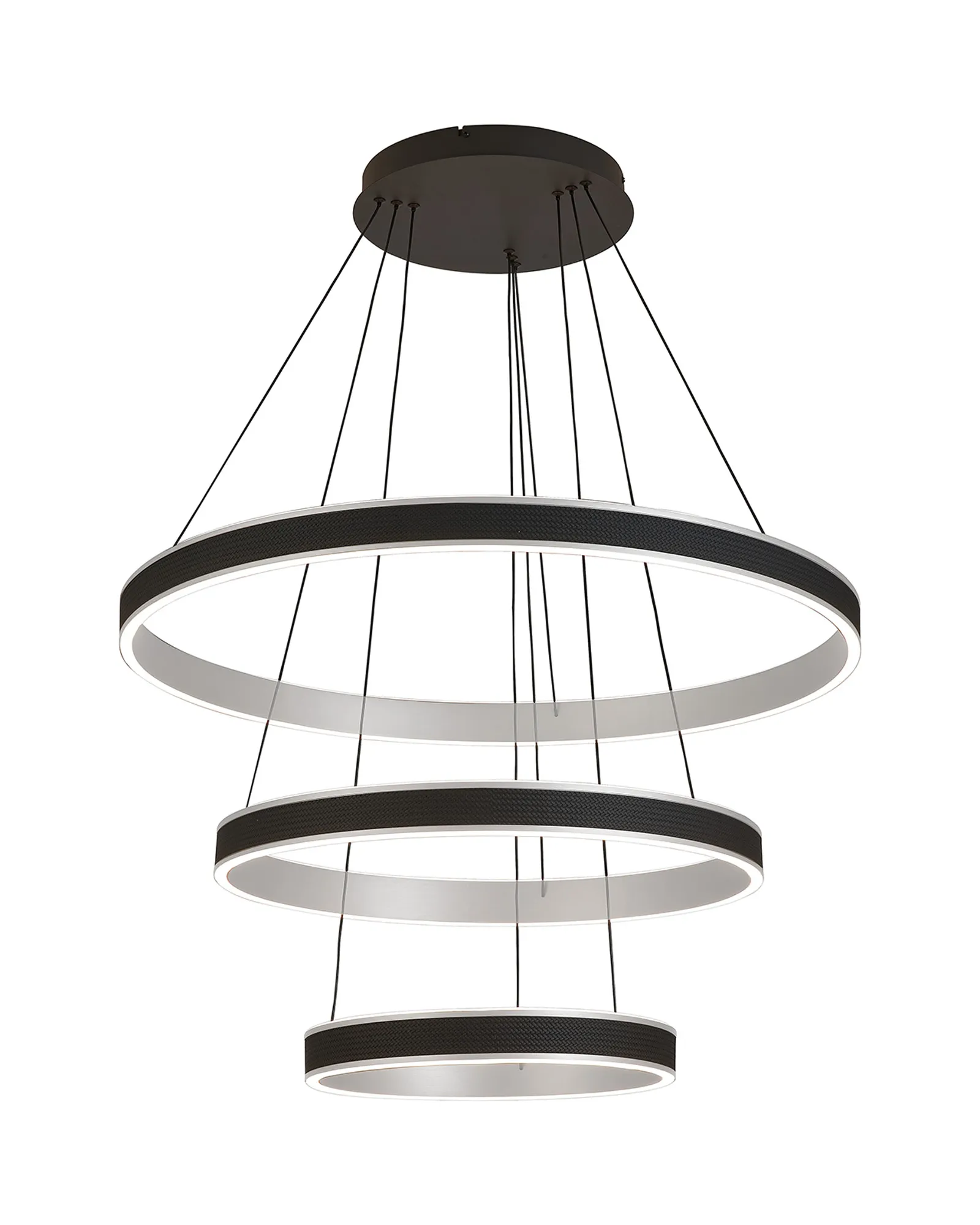 The Casson triple pendant light is a strikingly modern lighting solution that masterfully balances style and functionality. Featuring a sleek round design, it is available in a range of sizes-from 40cm to 1 metre, as well as a dramatic 3-tier option-making it suitable for both intimate home settings and sophisticated commercial spaces. A standout feature of Aralia is its tuneable colour temperature, allowing you to adjust the light from a warm 3000K to a crisp 6000K. This flexibility lets you tailor the ambiance to suit any mood or occasion, from relaxed evenings to focused work environments. The design is further elevated by a faux leather exterior, adding a unique tactile element while the choice of brushed gold or Antique Silver finishes lifts the design with a touch of luxury. A matching wall light is also available, enabling a cohesive and contemporary lighting scheme throughout your space. With its refined aesthetic and modern versatility, the Aralia range is as much a design statement.