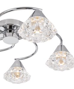 A semi flush 5 light ceiling fitting with sweeping arms, adorned with clear, faceted crystal effect shades that catch and refract light beautifully. The polished chrome finish adds a touch of modern sophistication, while the semi-flush design makes it perfect for rooms with lower ceilings. Whether you’re freshening up your entryway or adding a dash of glamour to your dining area, this versatile light effortlessly combines form and function.