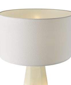The Project Table Lamp base combines crisp contemporary lines with understated luxury, crafted from opaque alabaster and accented with antique brass metalwork. It comes complete with a white linen shade, enhancing the dual-lit design that allows both the base and shade to glow.