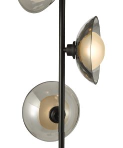 The prope 3 Light Floor Lamp brings contemporary elegance and soft, layered lighting to modern homes. Crafted in matt black with a luxury black braided cable, it features three smoked glass shades over white inner globes, diffusing light into a warm, ambient glow.
