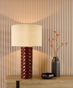 IMPRESSIVE TABLE LAMP IN RED GLOSS CERAMIC COMPLETE WITH NATURAL